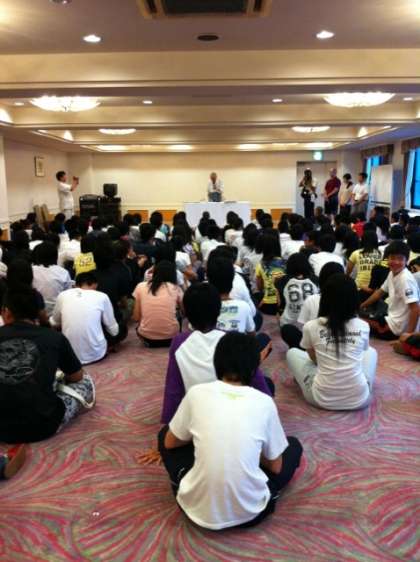 夕食後大広間にて、原爆を実際に体験された語り部さんによる「講話」です。