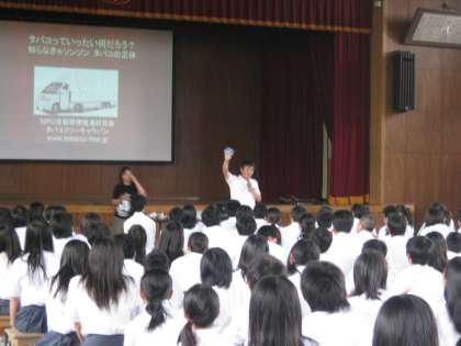 1年生は今日の5時間目、「防煙教室」を内科医の土井先生とそのスタッフに来ていただき実施しました。