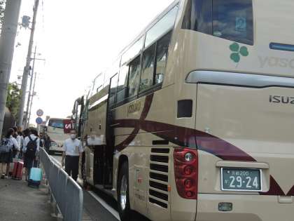 結団式を終え,バスに乗り込み,京都駅へ向かいました。