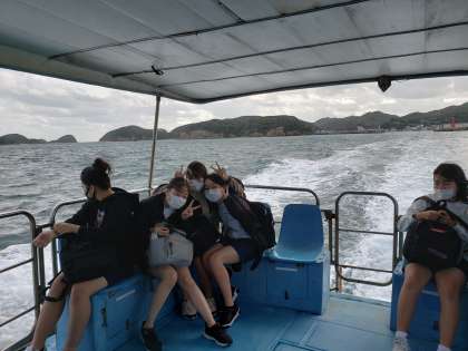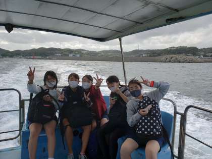 女子チームは無人島の辰ノ島に向かっています。