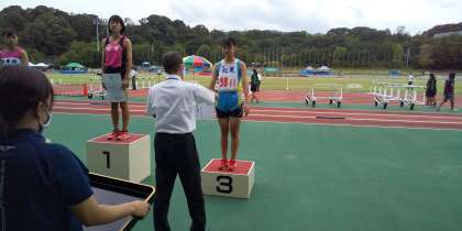3日(土)太陽が丘で、府秋季大会がありました。結果、女子走り高跳びで,M.Rさんが1メートル51で優勝、女子走り幅跳びではO.Rさんが4メートル77 で3位に入りました。おめでとうございます。