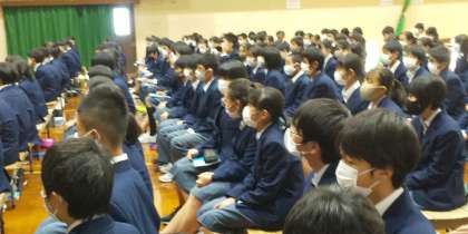 綾羽高校から高萩教頭先生に来ていただきました。軽妙な語り口で生徒をぐいぐい引きつけることに加えて、心に迫る話などあっという間の2時間でした。