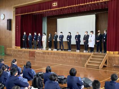着任式で新着任の教職員を迎え,続いて始業式を行いました。