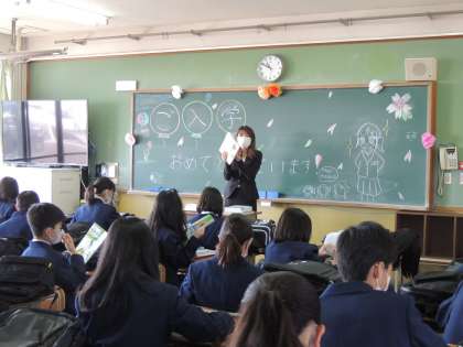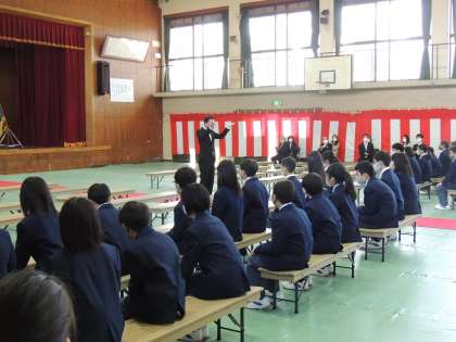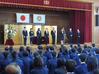 学校長より式辞の中で,「人・物・時」を大切にし,豊かな心を育んでほしいと話がありました。