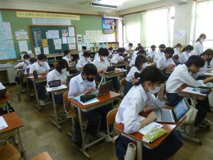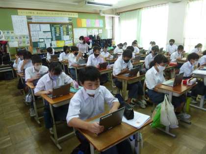 本日,4限に夏休みのしおりを用い,夏休みをどのように過ごすか各担任から話をしました。あと数日で夏季休業に入ります。来校いただいている懇談会でも話題にさせていただきますが,ご家庭でもしおりをご覧いただき,充実した休みになるようお子達とお話しいただければと思います。