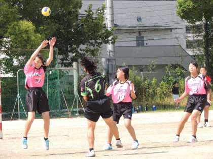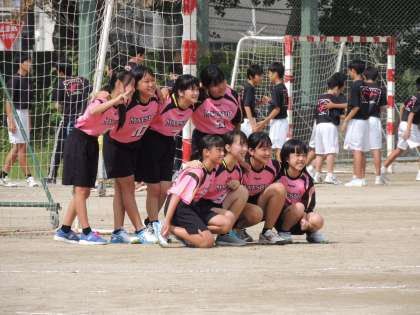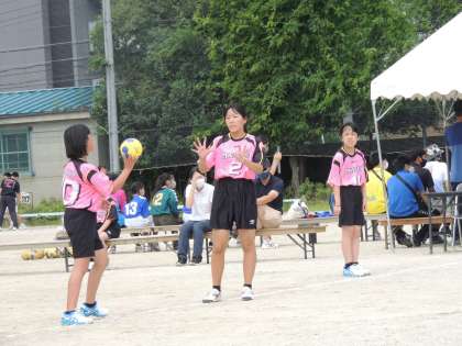 昨年秋の新人戦は出られなかった女子ハンドボール部。3年生が1年生を引っ張りながら懸命に戦いました。シュートを阻止し,最後まで走る姿はとても素敵でした。