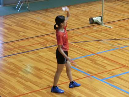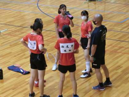 団体戦は,1回戦で加茂川中学校と対戦しました。軽いフットワークで3組ともに勝利を収め,2回戦へ。