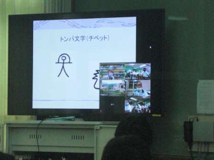 京都明徳高等学校の先生とリモートでつなぎ,国語の「漢字の特徴と世界の文字」という内容で授業をしていただきました。時には,クラスごとに回答が求められ,正解者に拍手がおきるなど楽しい雰囲気が伺えました。
