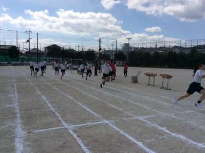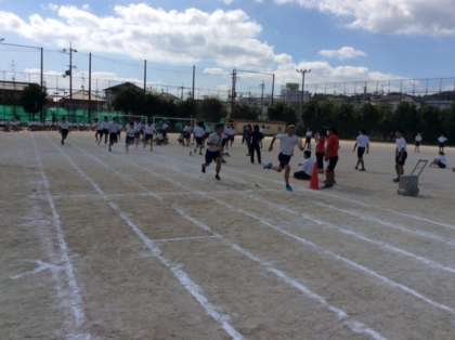 学級対抗リレー3年生の部です。さすがに速い!第1位は3年6組でした。