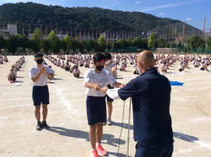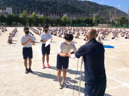 すべての競技が終了し,閉会式です。色別では,「赤」団が優勝しました。おめでとうございます。