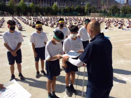 暑い中で行いましたので,帰宅されたお子達の体調に変調がないかを見ていただけたらと思います。よろしくお願いします。また,無観客での実施にご理解・ご協力いただきありがとうございました。