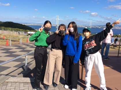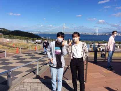 気持ちのよい空が広がっています。淡路SAから移動し,バスは鳴門公園に到着しました。
