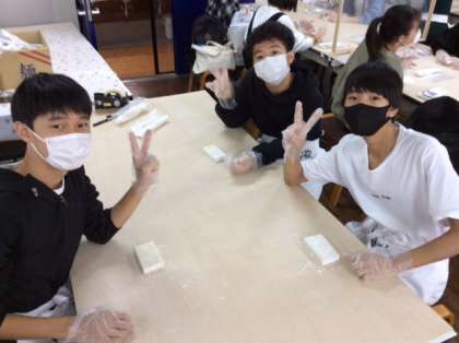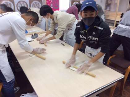 昨日の「うどん学校」での様子です。今日もこのような笑顔がはじけることでしょう。