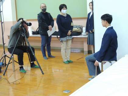 本日3年生は,進路用とアルバム用の写真を撮影しました。教室内が撮影所のようにセットされているのもあり,1枚目の進路用は緊張した面持ちでした。2枚目のアルバム写真では一転,にっこりよい笑顔でした。写真撮影の時期になると,受験(検)が近づいてきていることが感じられます。