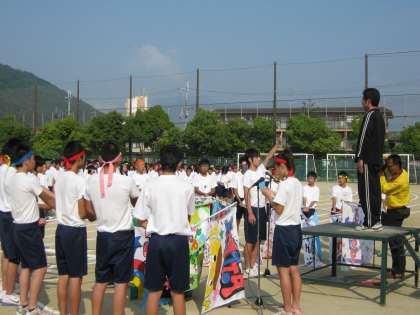 生徒会長の挨拶 学校長の言葉に続いて、体育委員長の選手宣誓など