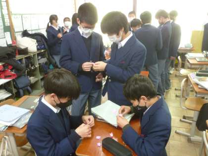 2年生 修学旅行 千羽鶴制作