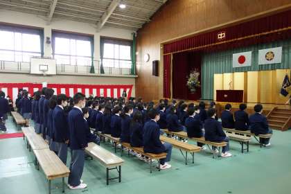 本日.令和4年度の入学式を挙行しました。真新しい標準服に身を包み,緊張した面持ちで新入生130名が式に臨みました。学校長からの時・人・学を大切にしてほしいという式辞,在校生代表からの堂々とした歓迎の言葉,そして新入生の初々しいけれど期待にあふれる入学の言葉が粛々とした雰囲気の中。短くとも保護者の方やや地域の方に祝福され新入生は松中生としての第一歩を踏み出しました。