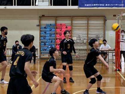 男子バレーボール部は,5月1日西院中学校と対戦しました。サービスエースもあり,声もよく出ていて,圧勝でした。