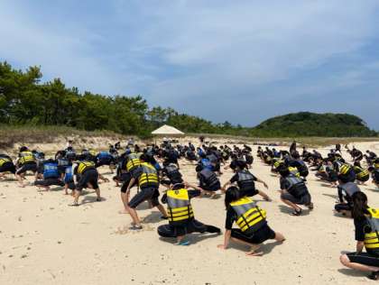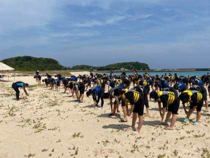 準備体操をして,ビーチバレー・パドルボート・シュノーケリング・バナナボートそしてビスケットボートを順に体験します。