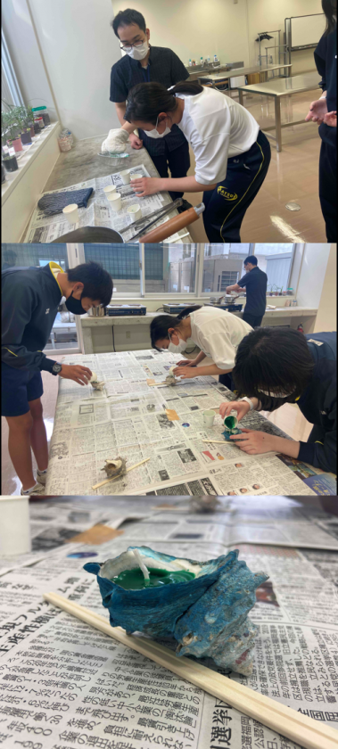 文化体験です。貝のキャンドルがきれいにできあがりました。使うのがもったいないぐらいの出来映えです。