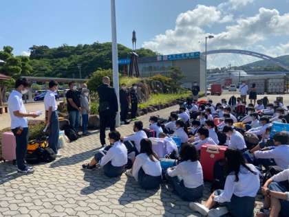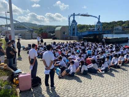 離島式の様子です。このあと,50分ほど乗船し,博多港に10時35分頃到着予定です。