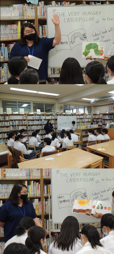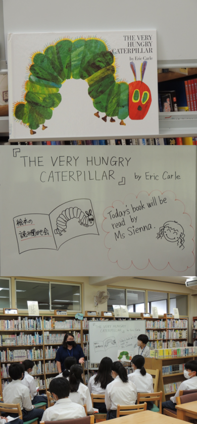 本日,昼休みにALTシエナ先生による絵本の読み聞かせが行われました。使用された絵本は,日本語訳「はらぺこあおむし」です。普通に読み聞かせるとうのではありません。単語を聞き取り,ビンゴを完成させるというミッション付きです。絵本にも目をやりながら,聞き取った単語を懸命に探していました。申込制だったのですが,図書館を覗いた人も数名加わり,盛況でした。参加した人が,終えてからの感想を丁寧に書いている姿も印象的でした。次回は,図書館でどんなことが開催されるのか楽しみです。