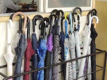 梅雨に入り,傘を使用する日が増えています。昨日,ふと3年生の教室前にある傘立てが目にとまりました。どの傘もきれいに巻いて立てかけられています。濡れた傘は巻きたくないと思いますが,他の人のことを考えてきちんと巻いて入れてあります。みんなで使う物は一人一人の心がけで,気持ちよく使える状態になります。学校は,共有する物がたくさんあるので,他の人が使うことを思っての行動をこれからも続けてほしいです。