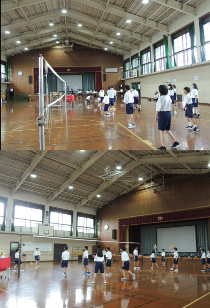 1年生は、保健育でバレーボールに取り組んでいます。今日は、「サービスの成功率を上げる」ことが目標でした。グループで練習後、良かった点・課題点を話し合い、再度グループでサーブを行っていました。最初よりサーブがよく入るようになっていましたが、それはグループでの話し合いやアドバイスの効果です。来週予定されている球技大会に活かせることでしょう。