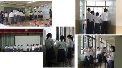 今日は、全学年が同一の時間に合唱練習に取り組みました。校舎のいたる所から歌声が聞こえてきました。歌うだけでなく、3年生ともなればパートごとに、自分たちのパートがどうしていけばよいのか、どこを注意していくのか話し込む姿が見られました。練習は始まったばかりですが、体育祭に向けての取組と相まって盛り上がっています。