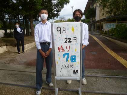 いよいよ1週間後には体育祭です。来週は、全校練習や予行が予定されています。この3連休、秋季大会の部活動もありますが、体調管理には十分に気をつけてほしいと思います。
