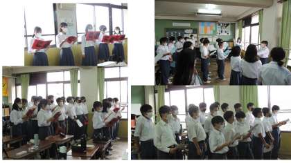 昨日に引き続き、歌声が響いています。パート別に繰り返し練習をします。今は音程の確認や音量を上げることに、多くのクラスが懸命です。