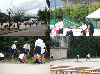 午後から、委員会や部活動の人たちで体育祭の準備を行いました。多くの人がテキパキと動いてくれたので、とてもスムーズにグラウンド整備ができたように思います。また、笑顔で準備にあたってくれたのが印象的でした。