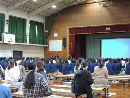 本日、第2回進路説明会を行いました。京都外大西高等学校・京都府立嵯峨野高等学校から来校いただき、3年生と保護者の方を前に、私立・公立の特色や高校生活を中心に説明をしていただきました。また、本校の進路主任より資料を用い、受検(受験)方法や時期、就学支援制度についてお話いたしました。多数、ご来校いただきありがとうございました。資料についてはメール配信をいたしますので、ご覧ください。