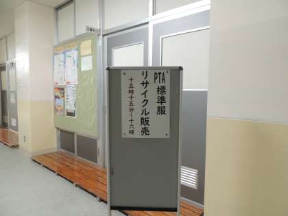 昨日、PTAのリサイクル販売が行われました。卒業生の方等から提供の標準服を、PTAスタッフさんで陳列・販売していただきました。昨年同様、好評でした。PTAスタッフの方々、準備・販売・片付けまでお世話になり、ありがとうございました。
