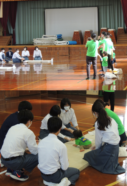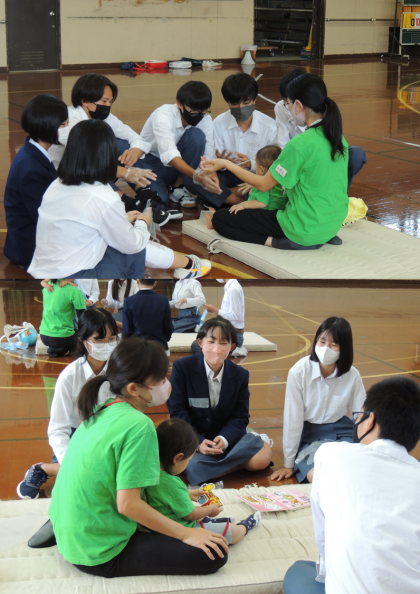 本日、3年生の1クラスに「赤ちゃん先生」がやってきてくれました。4つのグループにそれぞれ「先生」が分かれ、先生のママたちから一日の生活について話を聞いたり、触れ合ったりし、時間はあっという間に過ぎました。いつもの授業より、食い入るように話を聞き、「先生」に対し、懸命に関わろうとする3年生の姿は微笑ましかったです。最初、「先生」以上に緊張していたのは3年生の方でしたが、だんだん表情も緩み、和やかな雰囲気に包まれていきました。来週も「赤ちゃん先生」は、残りのクラスに来ていただきます。
