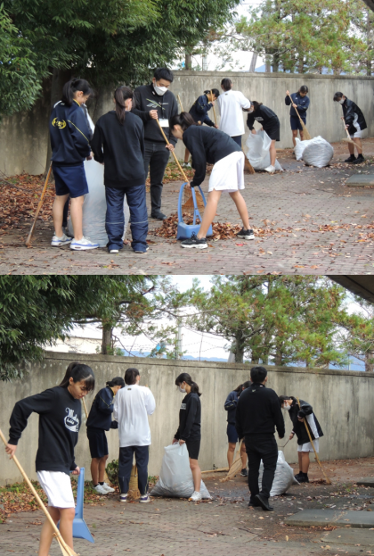今日は、急激に気温が下がり、寒い中での活動でした。昨日と同じ場所でもすでに大量の葉で埋め尽くされていましたが、風とも格闘しながらたくさんの落ち葉を集めてくれていました。