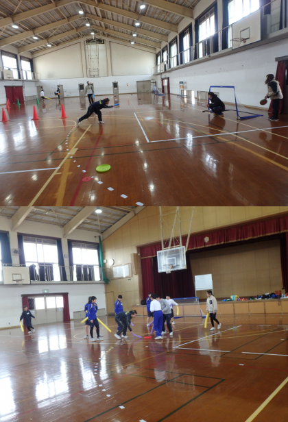 ユニバーサルスポーツの「フロアホッケー」で交流しました。