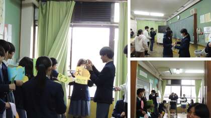昨日は1年生が、そして今日は2・3年生が「3年生を送る会」に向けての取組を行っていました。それぞれが相手への思いをこめて活動している姿はとても温かみのあるものに感じられます。
