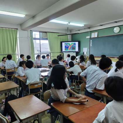 本日、全学年で「アート対話」を行いました。アート作品を通して、「相手の考えを丁寧に聴くことで、それを認め、また自分自身の新たな視点に気づける」「誰もが安心して発言できる集団となる土台を作る」ことを目的としています。