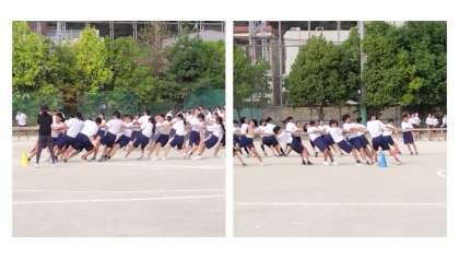 朝は空を見上げると秋の気配が感じられました。しかし、グラウンドは1時間目からとても暑かったです。そのような状況でも、体育祭の色別練習を熱い思いをもって取り組む姿が見られました。