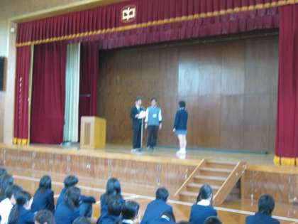 生徒集会の最後に、春季大会の結果を受けて「伝達表彰」を行いました。