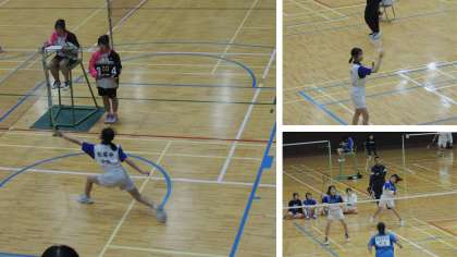 5月4日(日)・5日(月)、かたおかアリーナにて個人戦・団体戦が行われました。団体戦では、2試合を危なげなく勝ち進み、準決勝では、強豪校相手に最後までシャトルを追いかけました。劣勢でも、選手はよく粘り、応援している人も声援で後押しする姿がとても印象的でした。