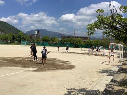 ハンドボール部、野球部、サッカー部が整地してくれました。