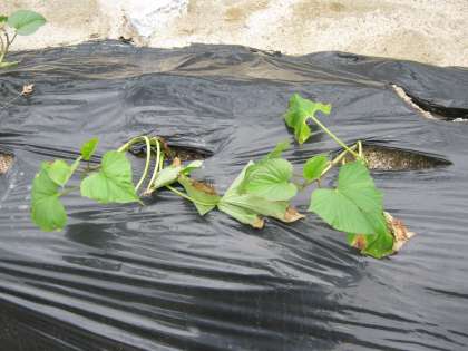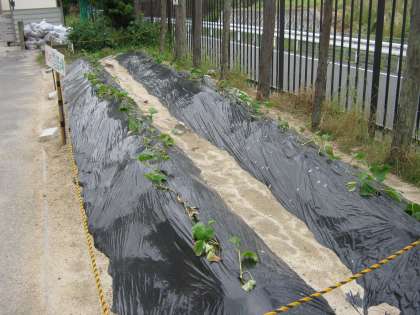 現在、学校の北側にサツマイモ畑を作り、黒マルチをかぶせて苗を植え、ようやく苗も根付いてきたようです。