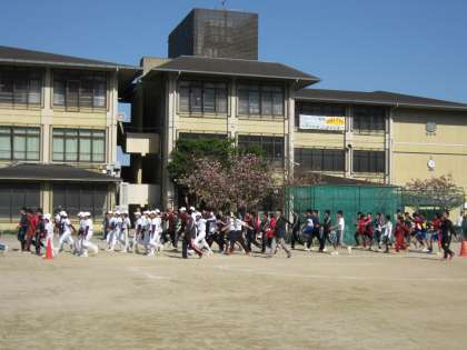 4月29日(祝月)にせまった、春季総合体育大会開会式の、行進練習が今年も始まりました。