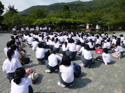 1年生は「不思議発見アドベンチャーin 嵯峨野,嵐山 〜いつ絆をふかめるわけ?今でしょ!」をテーマに嵯峨野・嵐山めぐりをしました。この取組を通して,班やクラス,学年の団結力を高め,自分たちの住んでいる地域のすばらしさを改めて知ることができたと思います。また,たくさんの人たちと交流できたのではないですか。とても暑い中,欠席もなく全員ルールとマナーをしっかり守ってがんばっていたと聞いています。今日学んだことを今後の学校生活や学習に活かしてください。