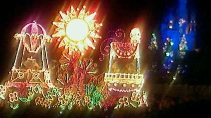 おはようございます。朝の報告では,今日も全員元気で体調をくずす生徒もなく最終日を迎えているということです。ご安心ください。朝のホテルでの様子の写真はまだ届いていませんが8:00から朝食の予定です。本日の予定は,朝食後バスに乗車しお台場へ向かいます。お台場での研修を終えた後は月島でもんじゃ体験,14:33東京駅発のひかり517号で一路京都へ向かいます。思い出をいっぱいのせて元気に帰ってきてください。写真は昨夜のエレクトリカルパレードの様子です。私事ですが,今日は午前中研修ですのでHPが更新できないかもしれません。あしからずご了承ください。
