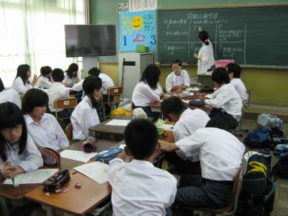 今日の5,6限,明日の5限は全校で人権学習を行っています。1年生は最近注目されている,「LINEでのトラブル(いじめ)」について,先生方の自作ビデオを見ていじめを解決する方法,いじめ防止に効果のある方法を考えるというものでした。生徒たちにとってとても話題性があるということもあり班討議も発表も活気に満ちたものでした。