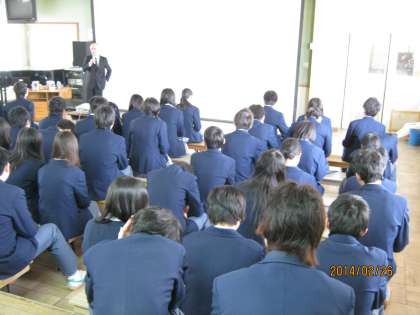 本日,3,4限に京都府西京警察署生活安全課のスクールサポーターを講師にお招きして「薬物乱用防止教室」を行いました。講師の方は以前,麻薬取締まりの最前線で活躍しておられました。最初DVDを短時間見て,薬物の種類,恐ろしさ,周囲や社会に及ぼす影響について考えました。その後の現場での経験を交えた話には鬼気迫るものがありましたね。特に,「ある高校生の実話〜甘い誘いと脱法ドラッグには十分注意してください〜」は現実味を帯びた話でみんな真剣に聞き入っていました。最後に「皆さんは国のの宝物です,自分を大切にする気持ちを持ってください」とのメッセージで締めくくられました。これから社会に出て行く君たちです。正しい判断力を持って将来の夢を達成してください。