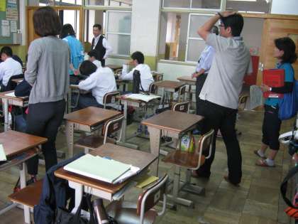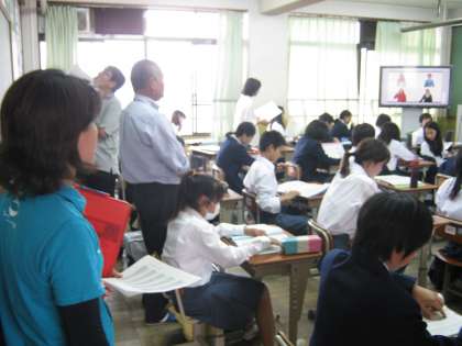 本日6限,1年生は小学校の先生方をお招きして授業を見ていただきました。 公開授業(14:10〜)
